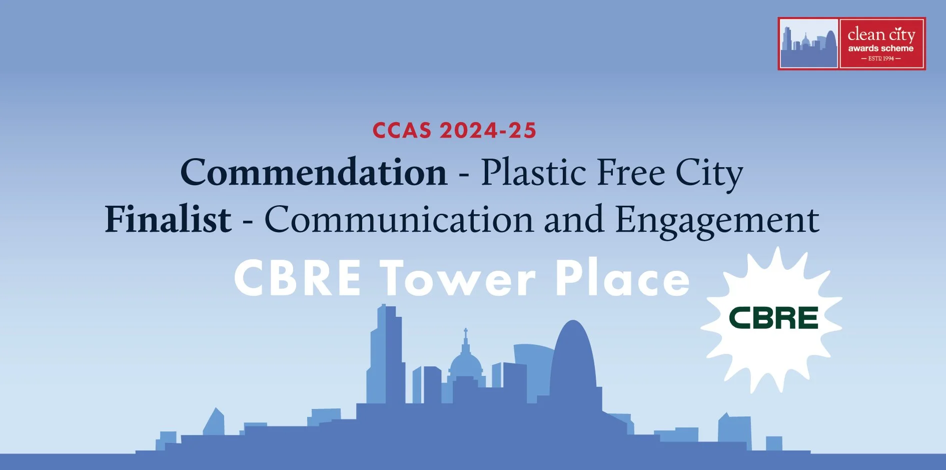 In 2024/25, alongside being a finalist in the Communication and Engagement category, CBRE Tower Place was awarded a Commendation in the Plastic Free City category - a recognition they describe as a rewarding and morale-boosting experience for the team.